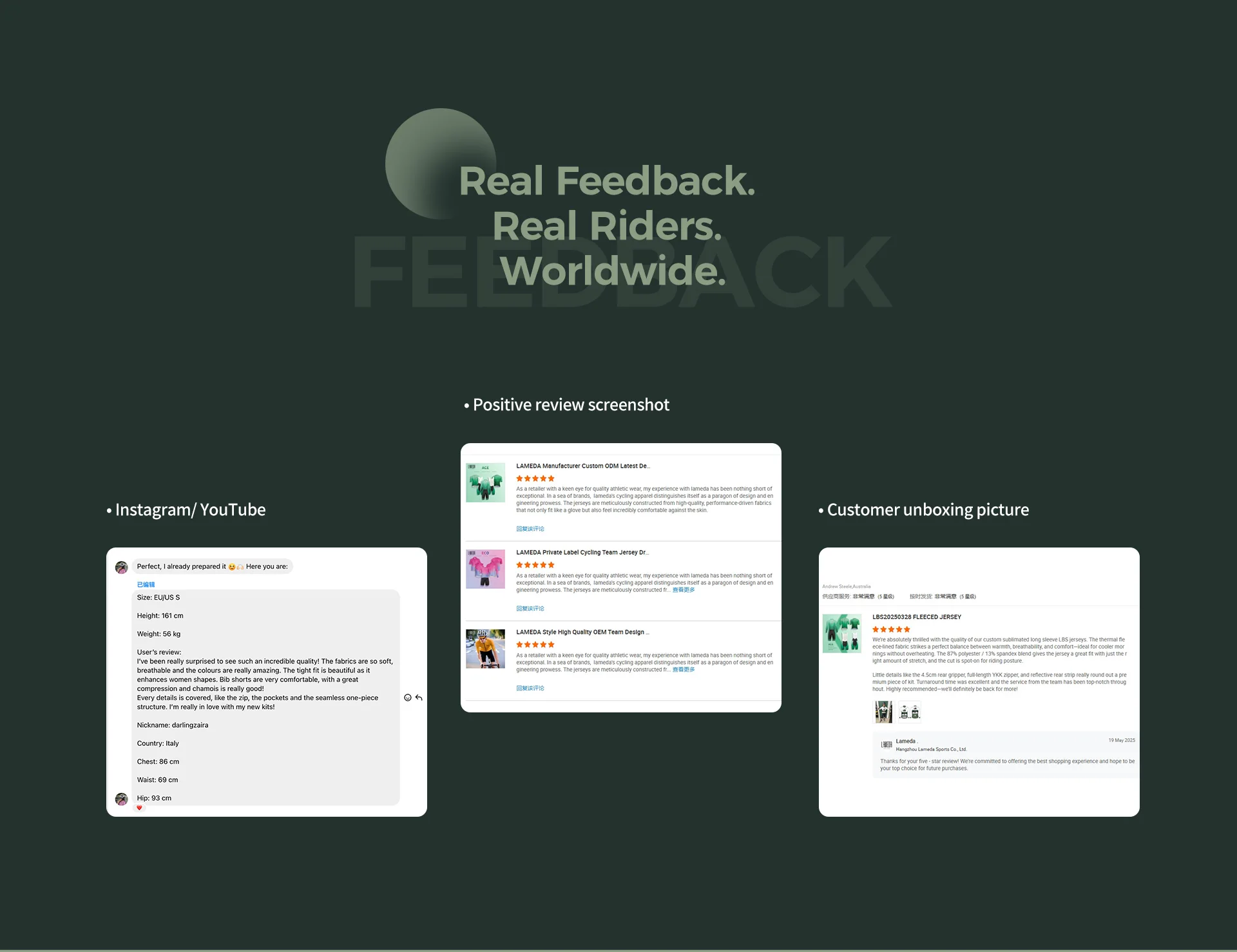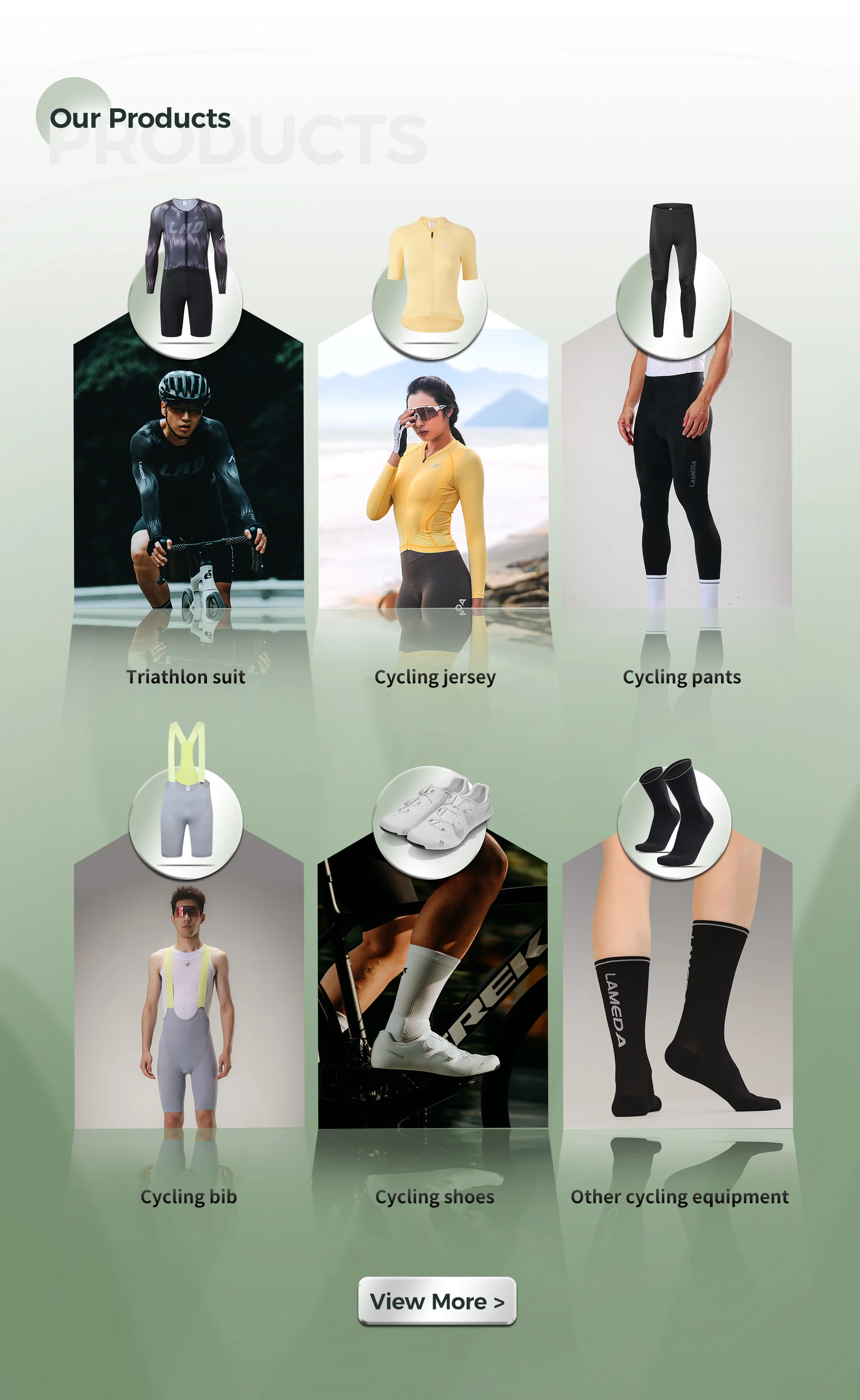 Ana ürünler:Bisiklet formaları, bisiklet setleri, Bib şort ve tayt, bisiklet rüzgarlık, bisiklet giyim